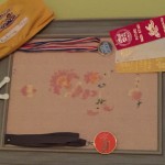 My husband is the more crafty one when it comes to art, though I’ve done some pastel drawings and some collage in scrapbooks previously, but this book was a way that our family could create something together. With the gorgeous examples in the book, it was very hard to decide, but we ultimately chose to do a project with found items, which can be those found outside, like feathers and leaves, or just stuff from around the house like ribbon, lace trim, or other items. Then, after rummaging around the house and looking at the stuff we had, we changed our minds. Obviously, this is a book that can generate a ton of ideas.