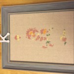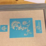 Finally, we decided to create a board that our daughter could use for her achievements, like her swim ribbons and her medals from soccer, etc. We wanted to create something with stencils and acrylic that she could use. However, rather than cut out our own stencils, we bought some we liked to try out; we’ll probably be more adventurous later when we redo the kitchen cabinets.